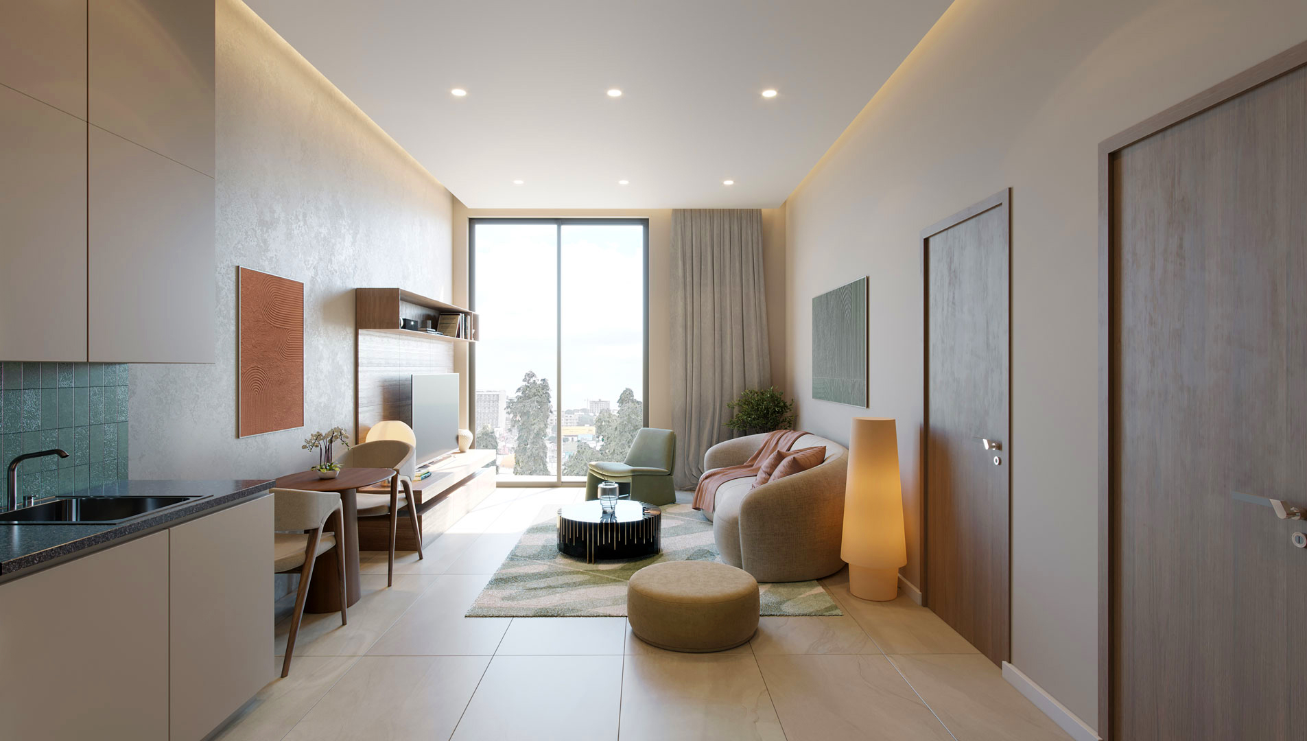 Featuring fully fitted studios to three-bedroom units, designed with spacious layouts, refined finishes, smart home systems, and calming amenities.